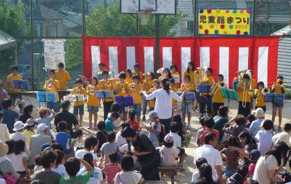 今年は,今熊野小学校の金管バンドクラブの演奏もあり,「宇宙戦艦ヤマト」「星の世界」「上を向いて歩こう」の三曲を披露しました。「宇宙戦艦ヤマト」は,先日の月輪夏祭りにも演奏した曲でしたが,回を重ねる程に上達しているのが分かる素敵な演奏でした。