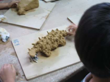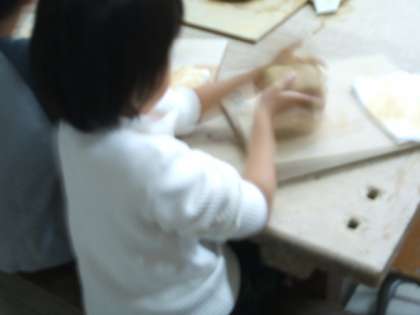 陶芸室で初めて土の粘土をさわって形をつくって行きました。