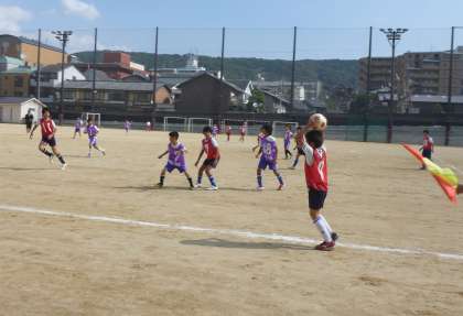 当日,開睛小学校のグラウンドでは,開睛小学校とのサッカーの練習試合も行われ,こちらもシーソーゲームを制する大健闘でした。
