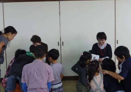 10月19日(土),土曜学習を行いました。今回は土曜学習2回目の読み聞かせ会があり,読み聞かせボランティアの方が,『かぶと三十郎』『かかしのペーター』『つきよのくじら』の3つのお話読んでくださいました。初めの『かぶと三十郎』では,二人でお話を読み分けておられ,とてもおもしろかったです。子ども達も途中であいの手を入れるなど,お話の世界に引き込まれているようでした。お語が終わると,絵本の細かい絵にも興味を惹かれて,絵本を覗き込んでいました。