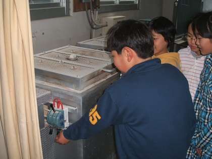 5年生の制作したマグカップ。充分に乾燥できたので,素焼をしています。