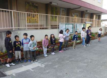 今週は,今熊野小学校11月の人権・あいさつ週間でした。朝から子ども達が東西両門のところで全校の友達に元気にあいさつをしていました。当番の子ども達,一週間ご苦労さまでした。