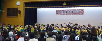 11月10日(日)に行われた月中祭に,一橋・月輪・今熊野小学校の三校合同金管バンド,メープルキッズが参加しました。「ガリレオ」オープニングテーマ『VS,〜知覚と快楽の螺旋』を演奏しました。少し難しい曲でしたが,子ども達は一生懸命演奏し素敵でした。月輪中学校吹奏楽部との合同演奏も楽しくでき,よい経験ができた月中祭でした。