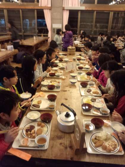 自分の作った竹箸で,美味しく夕食をいただきました。