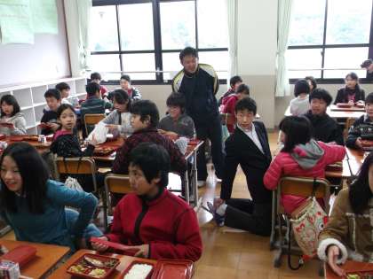 まず始めに,6年生の子ども達は,中学校給食を試食しました。子ども達は,お弁当給食を「美味しい。美味しい。」とよく食べていました。