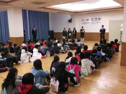 11月26日(火)月輪中学校に,一橋,月輪,今熊野小学校の6年生が招かれ,小中交流会が開かれました。