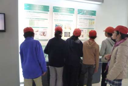 その後,工場内を見学に行きました。工場や研究の仕事は少し難しかったですが,最後に見せていただいた三洋化学工業の製品とそれを使った実際の商品は,自分達の生活とのつながりを大きく感じられる物ばかりでした。また,会社のあちこちにある消火器や安全第一の文字,花壇やプランターなど働く人々に対する配慮,排煙防止や水を汚さないようにする設備,防音壁など,地域に対する配慮など,三洋化成工場が,働く人々や地域を大切にしていることを,子ども達はしっかり学ぶことができました。