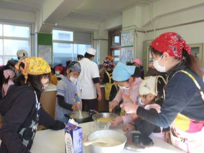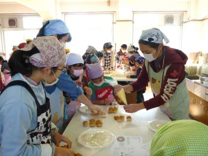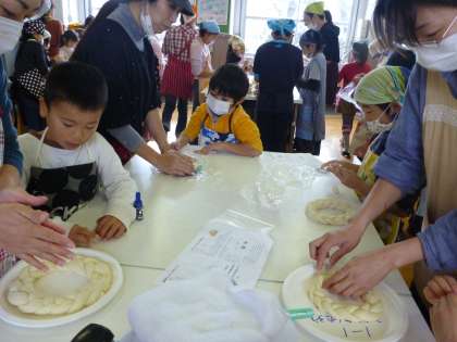 12月14日(土),今熊野おやじの会と今熊野PTA主催の「親子で作るパン教室」で,プチシュークリームとクリスマスリース(装飾パン)作りが行われました。今年も地域のパン職人今村さんに指導していただきました。カスタードクリームをこねるのは少し大変そうでしたが,出来上がったシュークリームはとても美味しかったです。クリスマスリースもみんな素敵にできていました。焼きあがりが楽しみです。