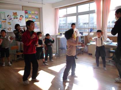 はじめに,顔合わせ会をし,じゃんけんゲームやダンスで盛り上がりました。