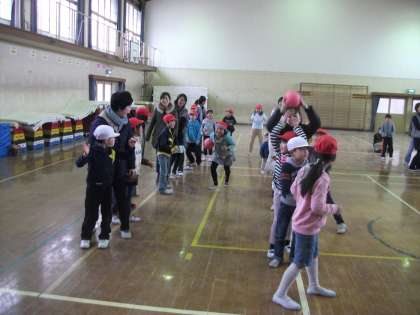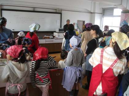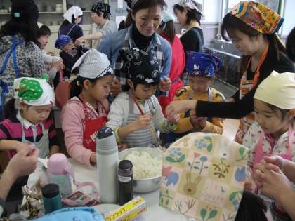 2年生は,生活科の時間に稲を育て,脱穀や精米を自分達の手で行い,お米が出来るまでを学習しました。今日の学年親睦会では,収穫したお米を使って,おにぎりパーティーをしました。 御飯が炊きあがるまでの間に,体育館で保護者の方と一緒にゲームをしました。そして,家庭科室でおにぎりを作りました。自分達で育て,自分でにぎったおにぎりは,とても美味しかったです。
