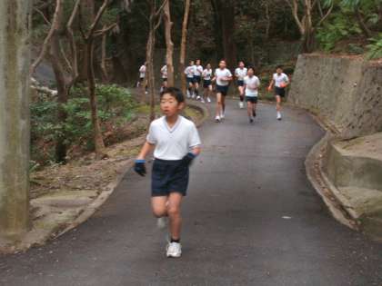 6年生は、走り初めをしました。運動場で、身体慣らしといつものトレーニングをした後、剣道からの今熊野観音寺まで1200M坂道コースを走りました。