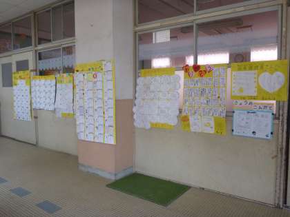 各学年が給食週間で書いたメッセージを,ランチルームの前に掲示しております。明日・明後日の参観日に来校された折りに,お時間がございましたらご覧ください。
