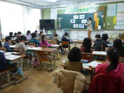 1年生は,国語「おはなしをたのしもう」で,「たぬきの糸車」の紙芝居を作ります。今日はグループの中で,自分がどの場面を描くかを決めました。どんな紙芝居ができるか楽しみです。