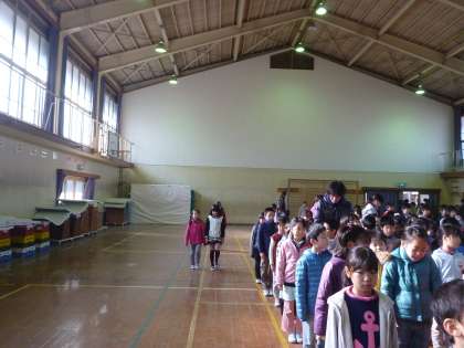 2月17日(月),今熊野小学校閉校式に向けて,朝会で入退場の練習をしました。初めての練習に緊張感をもち,どの子もしっかり取り組んでいました。