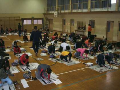 体育館で書初め