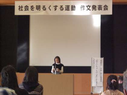 演奏の後本校児童が東山区長賞を受賞した作文「おじいちゃんの死から考えられること」を発表しました。