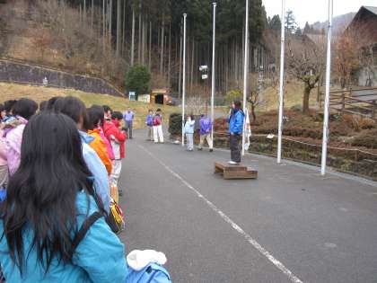 3校そろって,入所式を行いました。今年の山の家は積雪も見られず,所内の自然は早くも万作の花のつぼみやふきのとうが見られ,春の準備に忙しそうです。自然の中,3校の子どもたちも,卒業と新しい中学校生活に向け,友達との友情の輪を広げます。午後からは,手始めに体育館でスポーツレクレーションを行います。