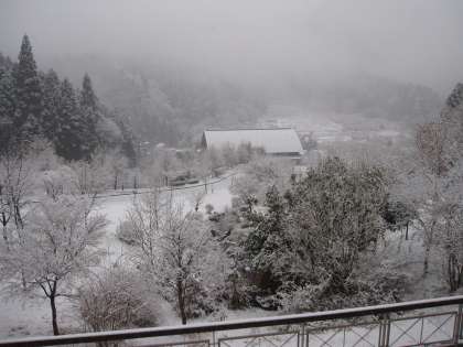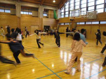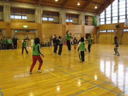 昼食後,体育館でスポーツ大会をしました。準備運動や「手つなぎ鬼」で体を温めた後,バスケットボールとドッジボールの対戦をしました。各チームとも力いっぱいプレーし,戦い終わったとは御礼の握手をして互いを称え合いました。ところでなんということでしょう。恐るべし子どもたちの願いが届いたのか,体育館を出てみると外はうっすら雪景色。このまま降り続けば,明日はひょっとして雪遊びが楽しめるかもしれません。