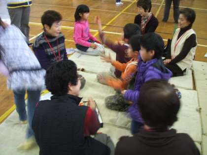 今熊野女性会・今熊野シニアクラブのおばあちゃん,おじいちゃんに学校に来ていただいて,昔の遊びを教えていただきました。