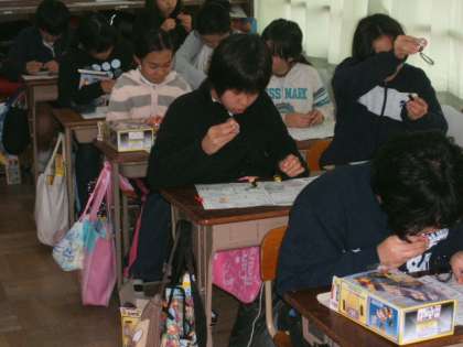 教室は,物音一つしません。集中力が36人分集まるとすごい緊張感です。コイルに鉄心をさして電池をつないで電磁石になっていることを確かめます。くぎがくっつくと「ついたー。」と喜びの声が聞こえてきます。つかないと,(あれ・・・・なんで・・・・)声は聞こえません。