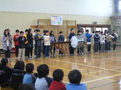 各学年から歌や合奏,詩の群読などの出し物を贈りました。