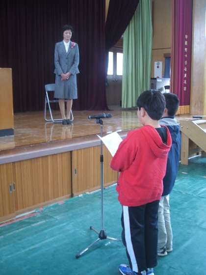 お別れの会のあとで,さびしい気持ちでしたが,新教頭先生を元気いっぱいのあいさつと歌声でお迎えすることができました。新年度を迎えるにあたって明るい日が差し込んだようでした。