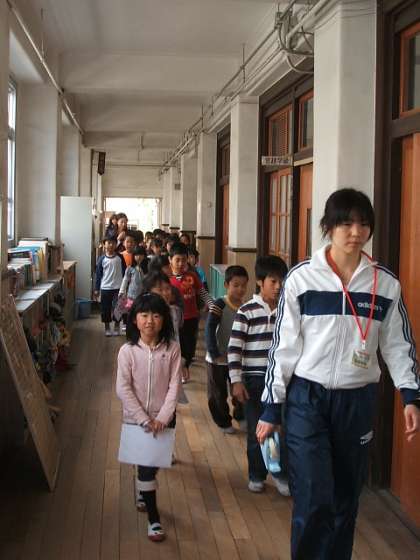 4時間目2年生は「生活」の学習で,1年生に案内するために,学校内をめぐっている学習をしていました。4年生の教室の前を通るときは,「音を立てないように・・・」という指導の下静かに歩いていきました。