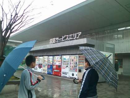 霧かかる明石海峡を渡り 淡路サービスエリアで休憩中です。