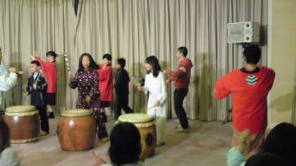 鬼面太鼓でお客さんと交流