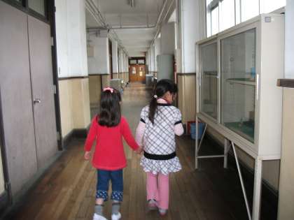 続いて,2年生が1年生の子の手をつないで学校探検に出かけました。