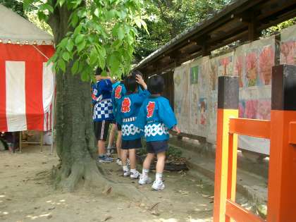 境内には,本校の全校児童の習字,絵画が展示されています。