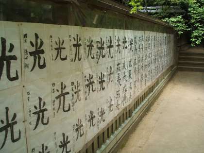 毎年お祭のときに境内で今熊野小学校全校児童の習字と絵を展示してもらっています。
