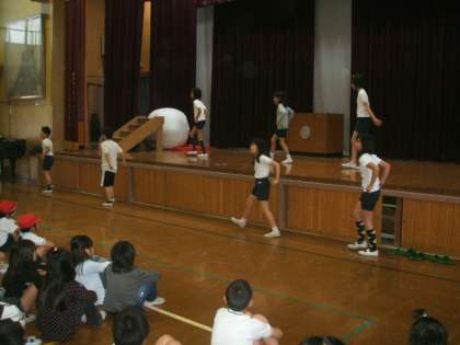 はじめに,ダンス係りの児童が踊りました。楽しそうで生き生きと踊っていて拍手が起こりました。