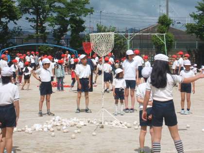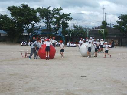 5月27日(木)運動会のフレンドリー種目,大玉ころがし,綱引き,玉入れの練習を行いました。