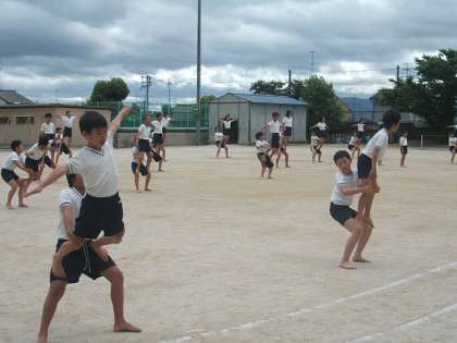 高学年の組体操の練習が運動場になりました。