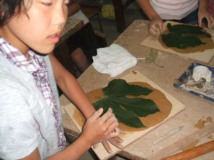余った時間で大きな葉っぱのお皿を作りました。