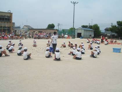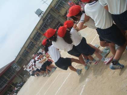 玉入れは,一回戦二回戦の合計が同数で決勝の三回戦をしました。玉を数えるときも盛り上がりました。綱引きは,中央からほとんど動かない名勝負でした。運動場にみんなのてに力が入りました。