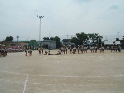 5,6年生の組体操は,とても緊張感のある演技で,会場から大きな拍手が起こりました。今熊野の未来にかかるレインボーブリッジが完成しました。