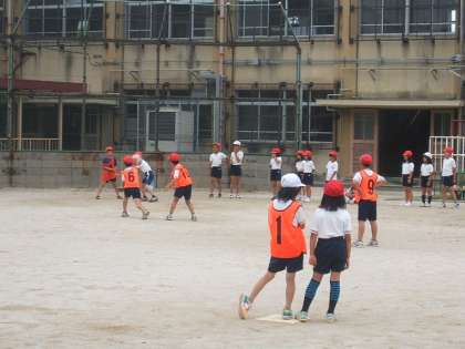 ベースボールタイプの球技は,基本的なルールを知らない子にとっては,どう動いていいのか分からなくて,右往左往してしまいます。