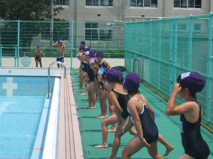 6月17日(木)低水位のプール学習(1,2年)を始めました。