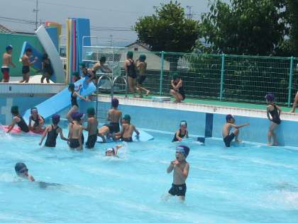 準備運動をして,いざプールの中に,水をこわがる児童もいませんでした。