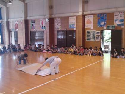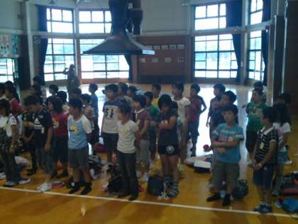 入所式で所長さんから3日間で、自分のことは自分でできる大人に成長するように励ましのことばをいただきました。その後、オリエンテーションがあり、部屋・トイレの使い方や毛布・シーツの畳み方の説明を受けました。さあ、いよいよ磯観察へ出発です。
