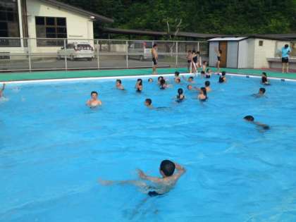 磯観察の後は、お風呂タイムの前にプールでおもっいきり遊びました。明日は雨もようなので予定にはなかったのですが、この晴れ間を逃さす遊んでいます。