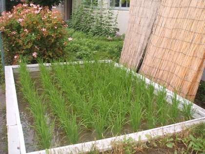 緑のカーテンのアサガオが3メートルを超えました。ツルは横にもななめにも伸びています。アサガオの前のコスモスも田んぼの稲もしっかりと伸びています。