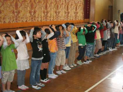 楽しいゲームで盛り上がりました。全校の歌声が響きました。
