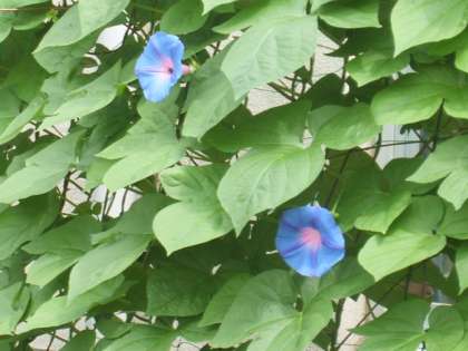 オーシャンブルーの花は濃い青です。夕方になるとピンク色になります。