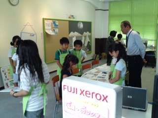 張り切って働いています。いよいよ買い物も始まりました。まず、区役所に行って住民登録をし、次に銀行で電子マネーにお金を移してお店巡りが始まりました。本当の商品が買えるので楽しそうです。