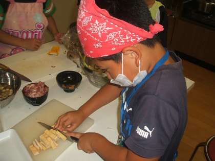 お母さんお父さんはすごいなあ。お母さんやお父さんの包丁さばきをみて,子ども達は関心していました。山の家では,自分たちだけでやるんだよ。
