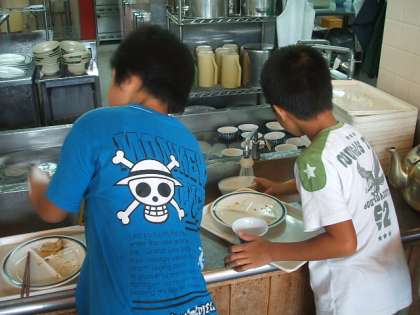 一日目の昼食は,焼肉丼または,きつねうどん・かやくご飯セットのどちらかを選んで,サラダなどのおかずは,バイキング。