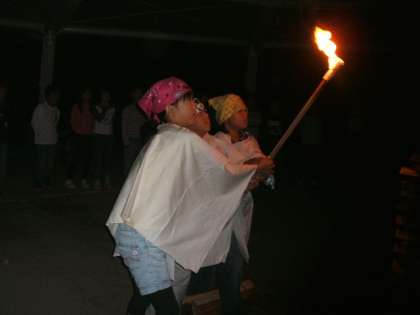 1日目のキャンプファイヤーは,各学校からの出し物出盛り上りました。
